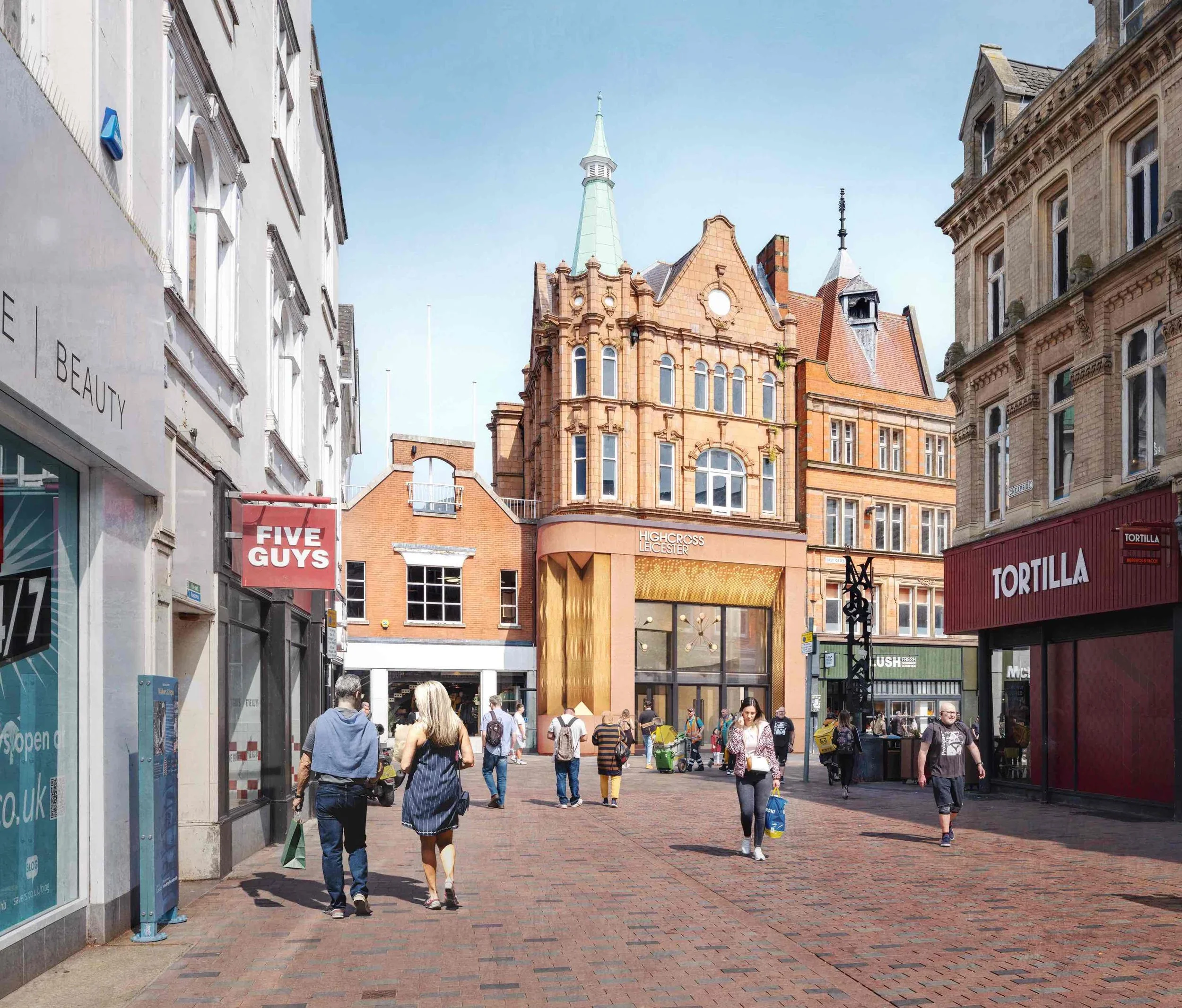 The design was routed in inspiration from Leicester’s rich textile heritage and features concepts of a ‘runway’, curtain-style facades, and pleated surfaces. The improvements are set to enhance the wider townscape and improve connectivity, wayfinding, and the overall visitor experience. It will revitalise and modernise the centre’s frontage to strengthen the centre’s presence within Leicester to better reflect the significance of the shopping centre as a destination location.
